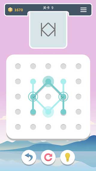 游戏中主要分为三大模式:经典、镜像和拼图,且主要通过两点之间的线条拉出更多的点来使下方的图形延伸至与上图一般即可,虽说不是特点难,但还是很有挑战性的。