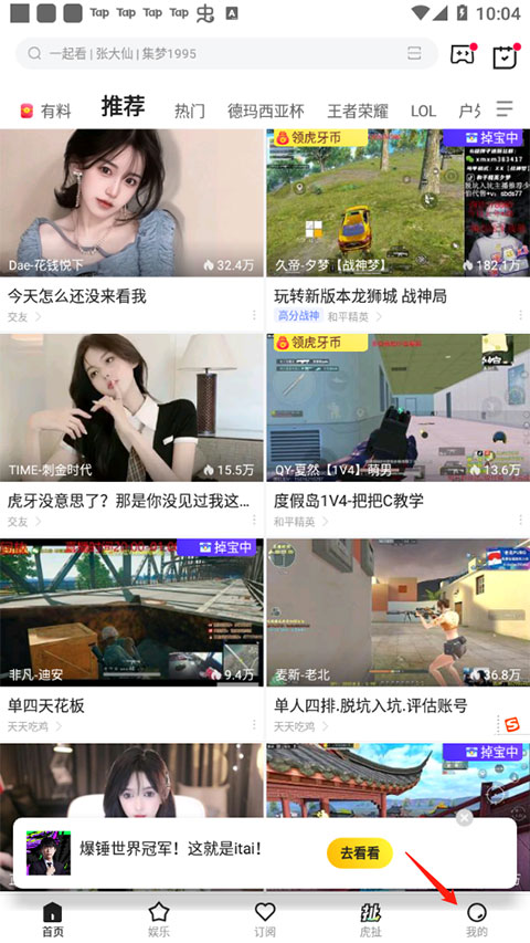 2、紧接着在虎牙直播主页面中,点击一个如图所示的直播视频进去,