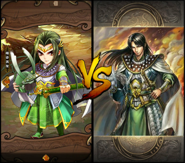 这里,给大家针对《怒焰三国杀》和《三国杀》中有些区别的武将形象,做一个小对比。